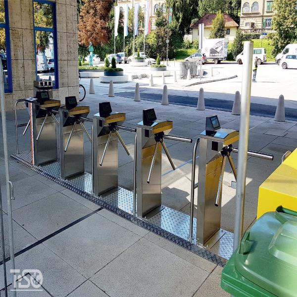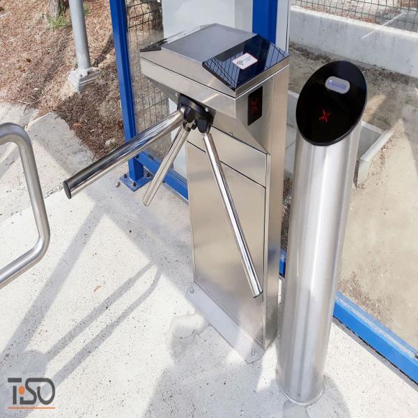 - Cửa quay ba chân có động cơ hai chiều với chức năng thả thanh chắn thình lình;